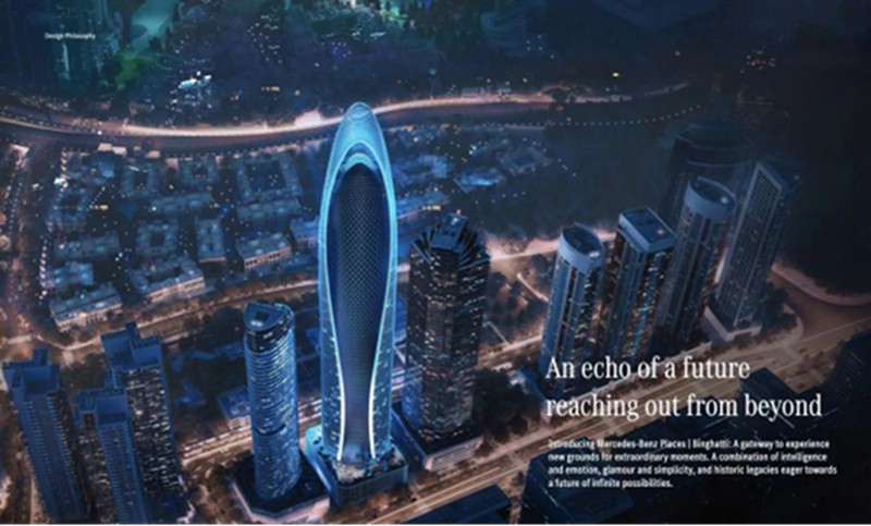 Mercedes Benz Places|Binghatti是一个开创性的住宅杰作,无处不体现梅赛德斯智能感、设计概念和科技感。项目包括整套高达73000平方英尺的太阳能光伏技术外墙(节能、科技、绿色建筑)。