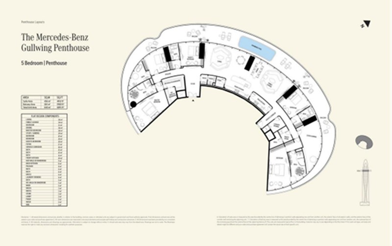 Gullwing Penthouse:5卧顶层公寓,位于59-61层。