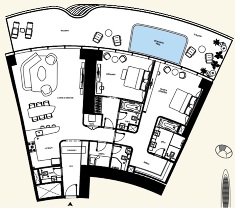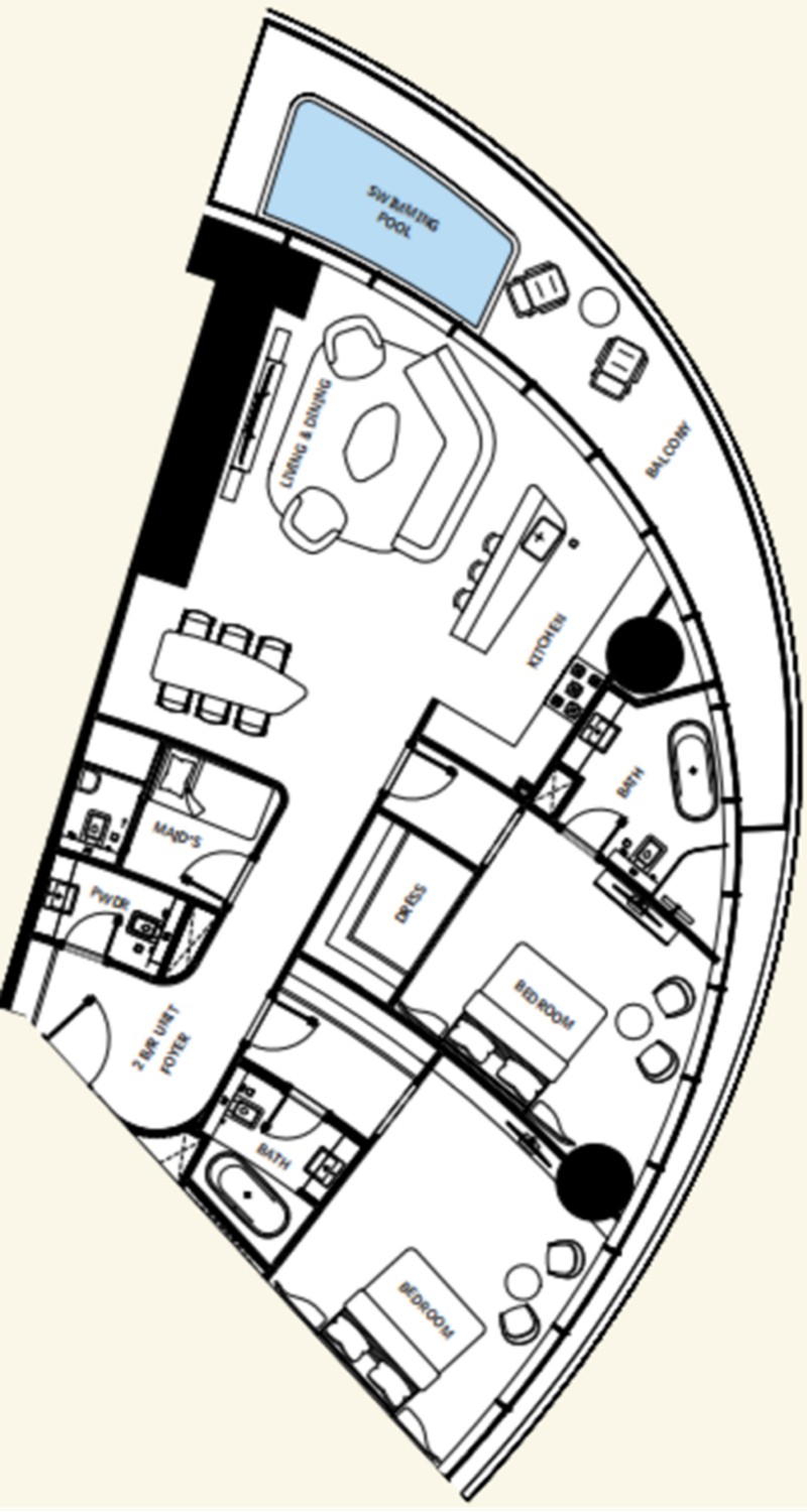 户型特点:所有户型均配备私人泳池和全屋智能家居,每套豪宅都可尊享哈利法塔景观。