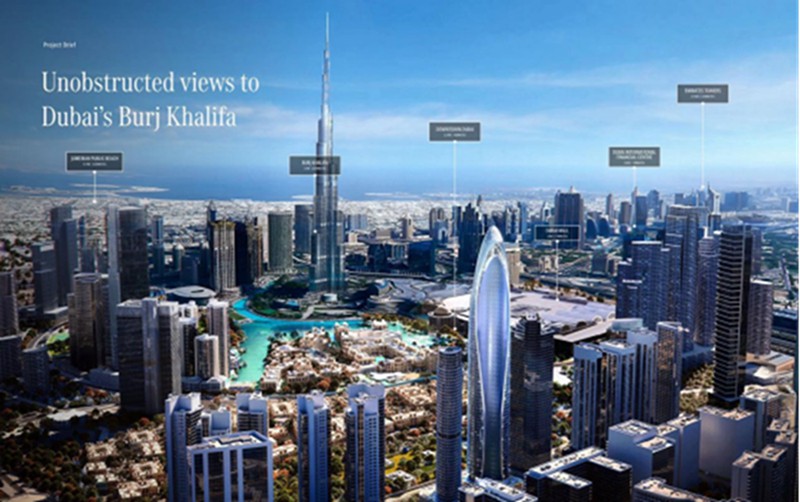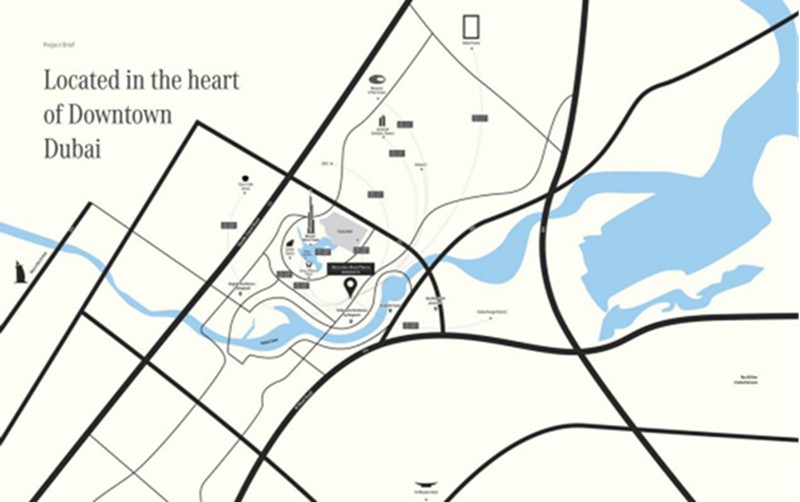 核心地段:位于Downtown Dubai(迪拜市中心)的核心中的核心,距离哈利法塔距离仅1公里,是市中心非常稀缺的超豪宅项目。