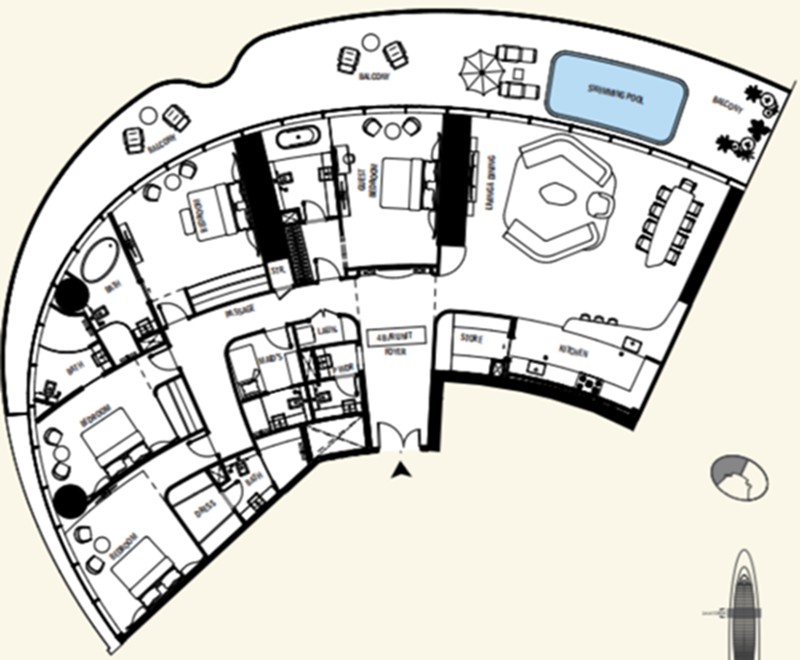 Uhlenhaut CoupéPenthouse:7卧复式顶层三层公寓,位于64-66层。