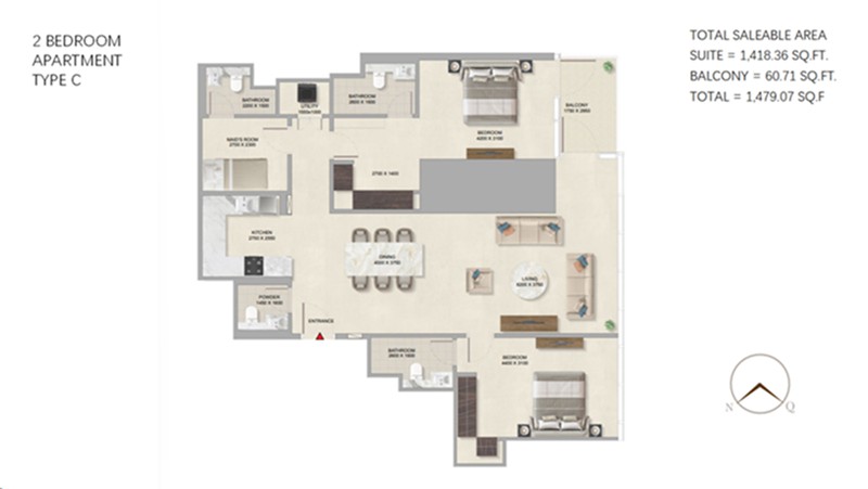 2 房: 面积 110-149 m²,475 万迪拉姆起。