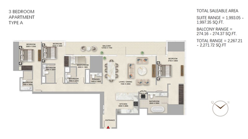 物业费: 17 迪拉姆/平方英尺。