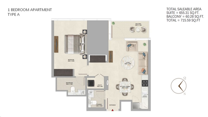 1 房: 面积 64-81 m²,286 万迪拉姆起。