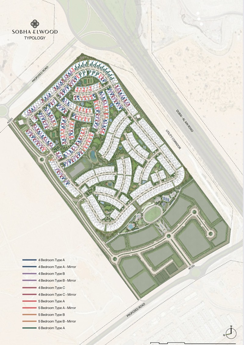 住宅类型:这是一个专属社区,提供四卧、五卧和六卧的豪华别墅,旨在为住户营造宁静自然的居住环境。