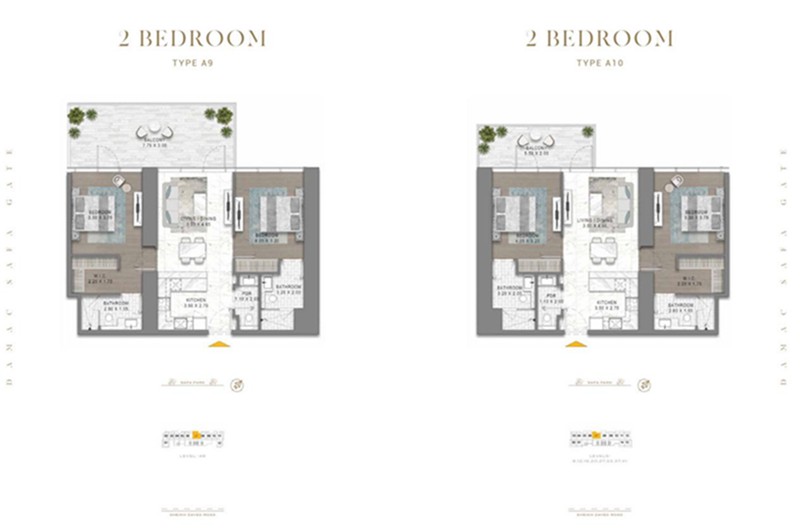 豪华 2 房: 面积 1,111 平方英尺,均价 3,288,000 迪拉姆。起步价 277.2 万迪拉姆。
