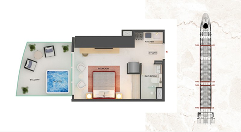 一房:1.42M AED 起