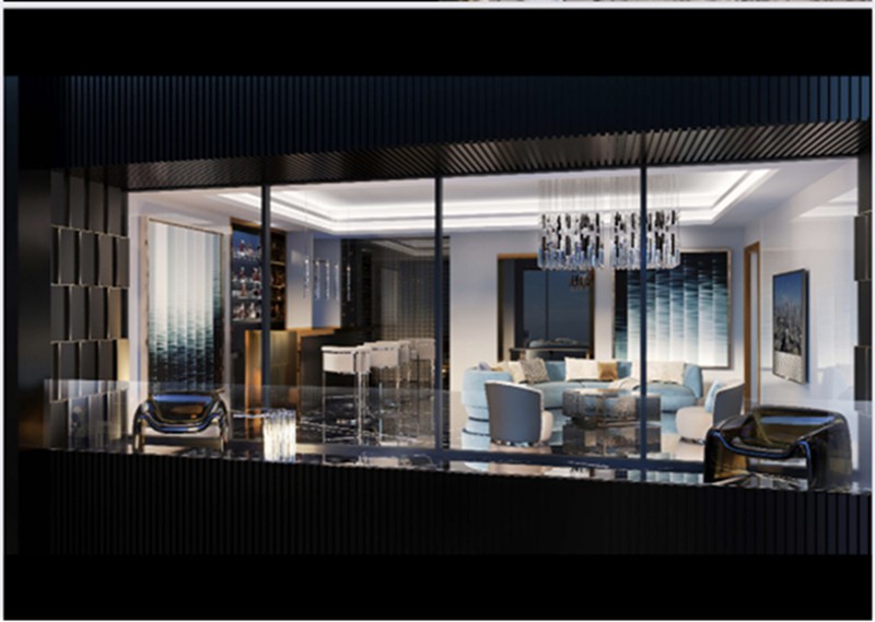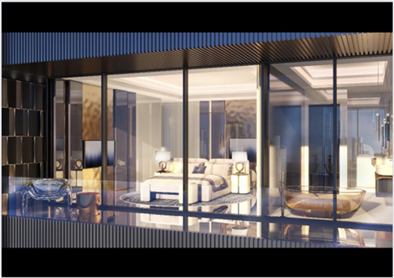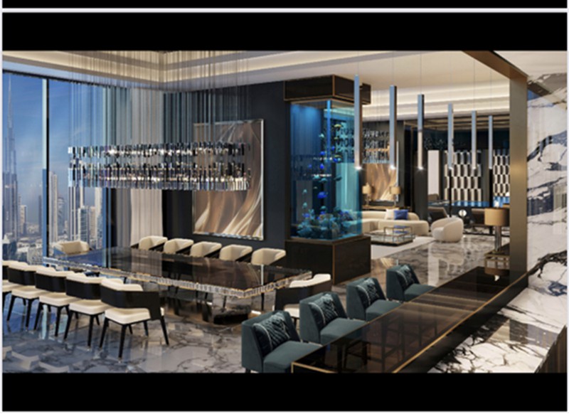 天文学公寓套房 (Astronomical Penthouse Suite): 仅 1 套,为整层设计,5室三厅,面积 12000 平方英尺 / 1087 平方米,价格 1.75 亿迪拉姆。