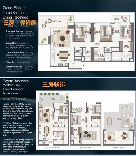 开发商: 伊玛尔(Emaar)。Emaar 是迪拜政府控股的上市公司,中东最大的开发商,是哈利法塔(Burj Khalifa)和迪拜购物中心(Dubai Mall)的缔造者,占据全迪拜房地产 2/3 市场份额。