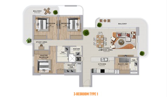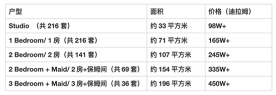 户型范围:Studio – 3 房 + 保姆间