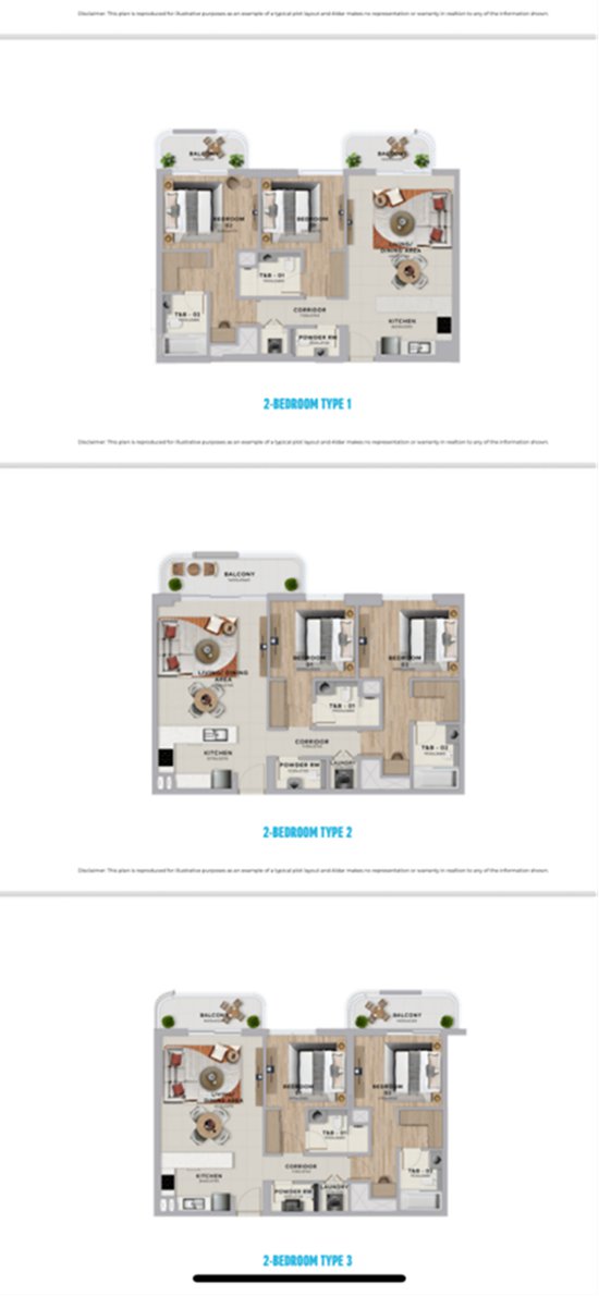 3 房 + 保姆间:36 套,约 196 平方米,起价 450 万迪拉姆