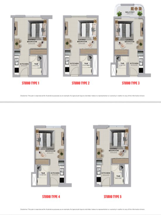 Studio:216 套,约 33 平方米,起价 98 万迪拉姆