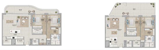 两房复式/两房复式+Study:72 套,155-161㎡,670-680 万迪拉姆起