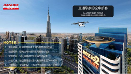项目定位: 迪拜尊贵奢居代表,主打“三高一坪”(超高层、高回报、高标准装修、飞机坪)。