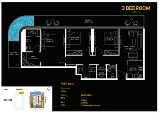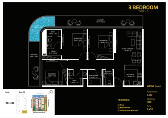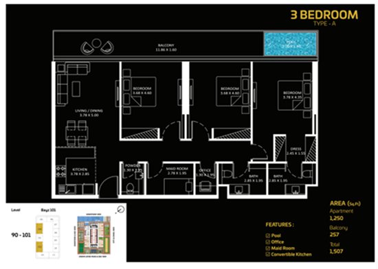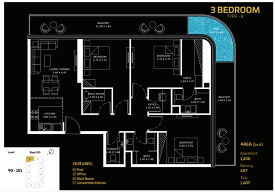 三房户型: 4,460,000 迪拉姆起。