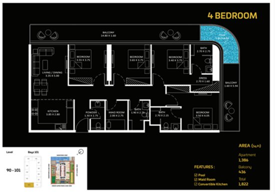 四房户型: 5,836,000 迪拉姆起。