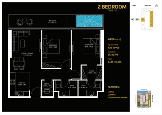 两房户型: 2,795,000 迪拉姆起。