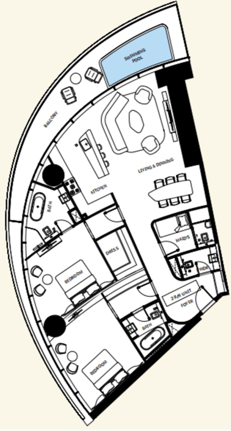 Grand Mercedes Suites:3卧3卫,位于34-52层。