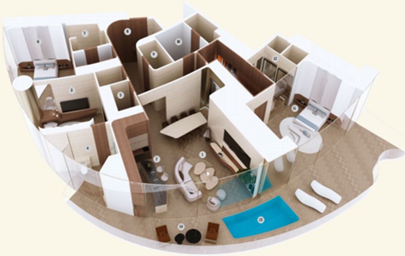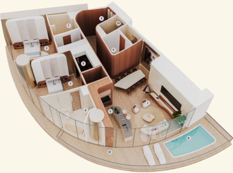 户型特点:所有户型均配备私人泳池和全屋智能家居,每套豪宅都可尊享哈利法塔景观。