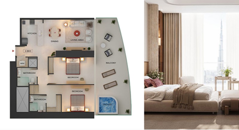 交通与可达性:步行可达地铁站与迪拜运河。靠近文化村、Healthcare City、Creek Harbour和市中心。区域未来将因地铁蓝线、运河延伸及未来高铁枢纽进一步提升价值。